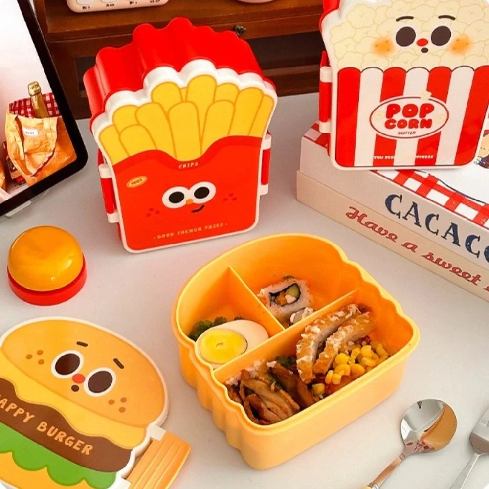 Creative Cartoon Bento Box Divided Leakproof Portable Lunch Box Hamburger French Fries Food Container Picnic